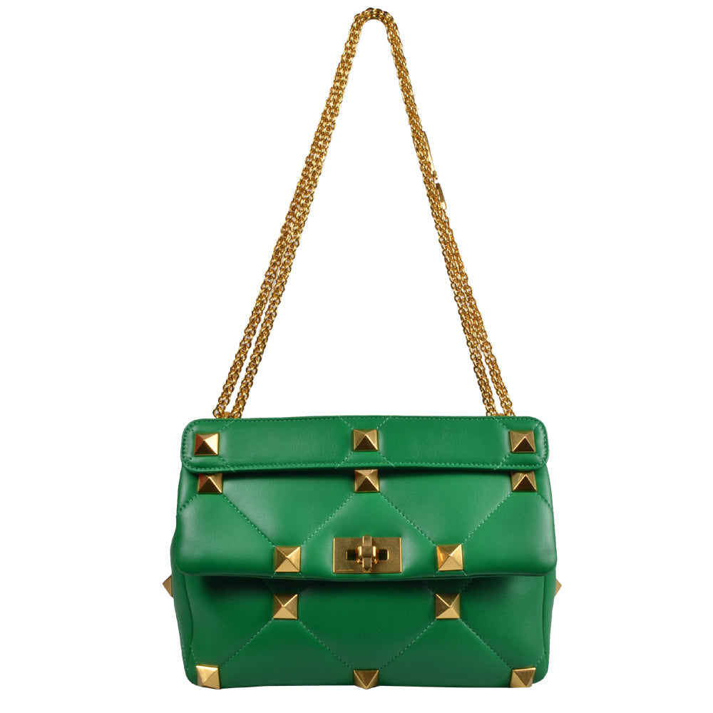 Valentino Roman Stud Nappa Leder Grün Hardware Gold