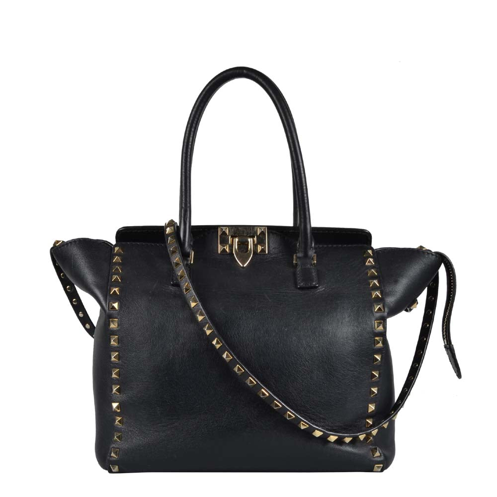 Valentino Tasche Shopper schwarz Leder gold Nieten Studs mit Schulterriemen