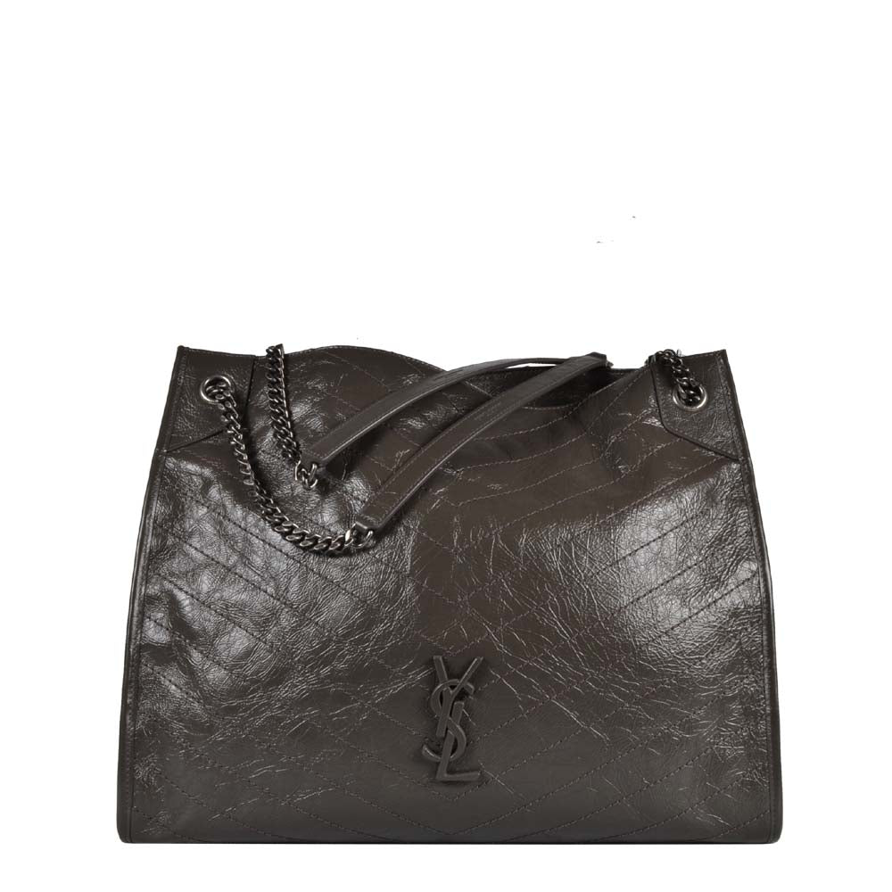 YSL Saint Laurent Niki Shopper Leder Grau Silber