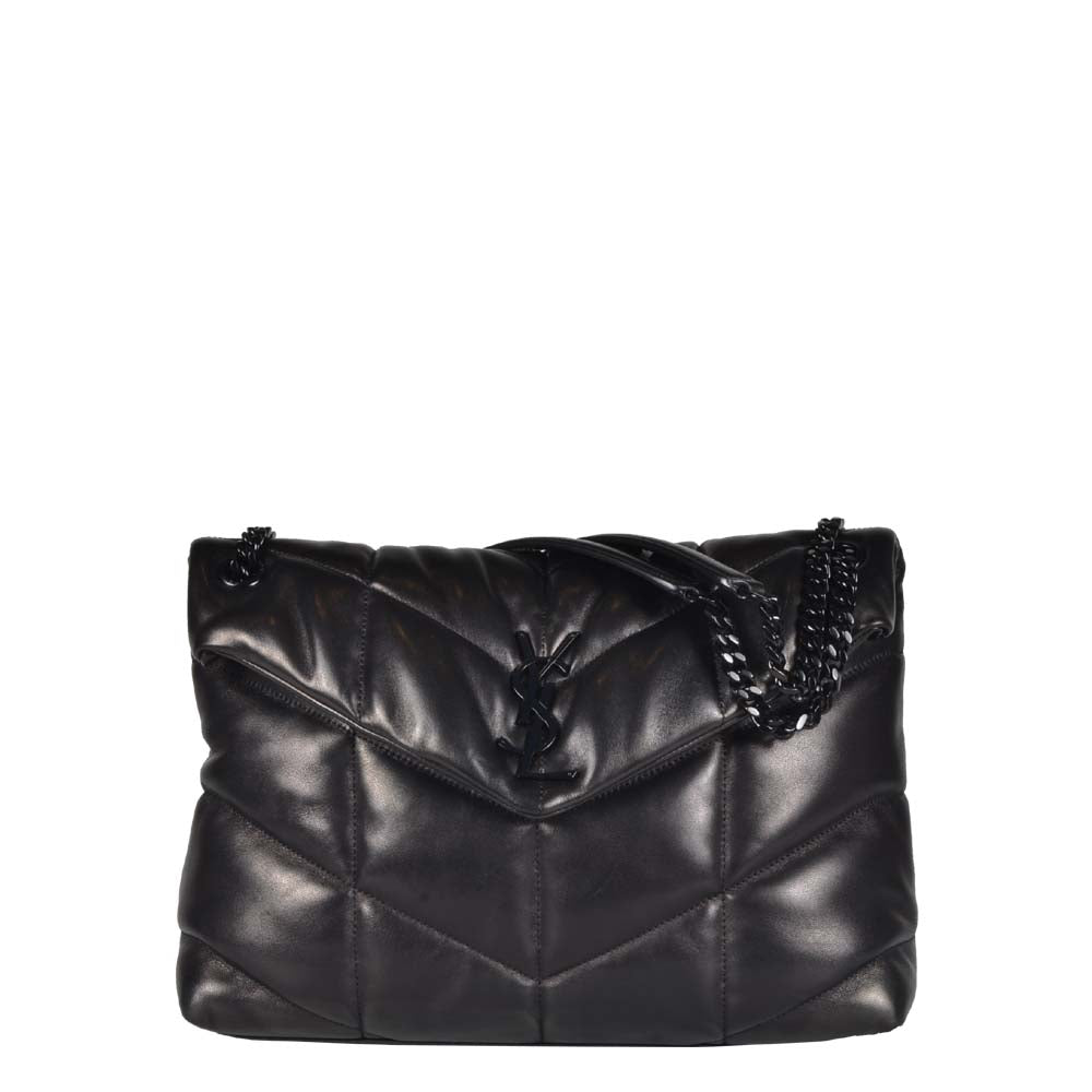 Yves Saint Laurent Puffer Leder gesteppt Schwarz Hardware Schwarz