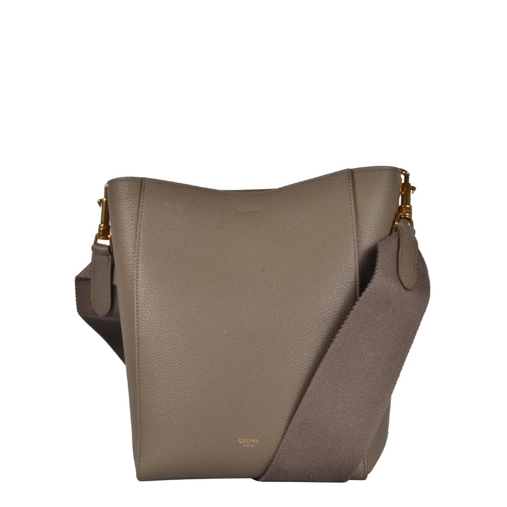 Celine Seau Sangle Bucket Bag Kalbsleder Taupe Hardware Gold