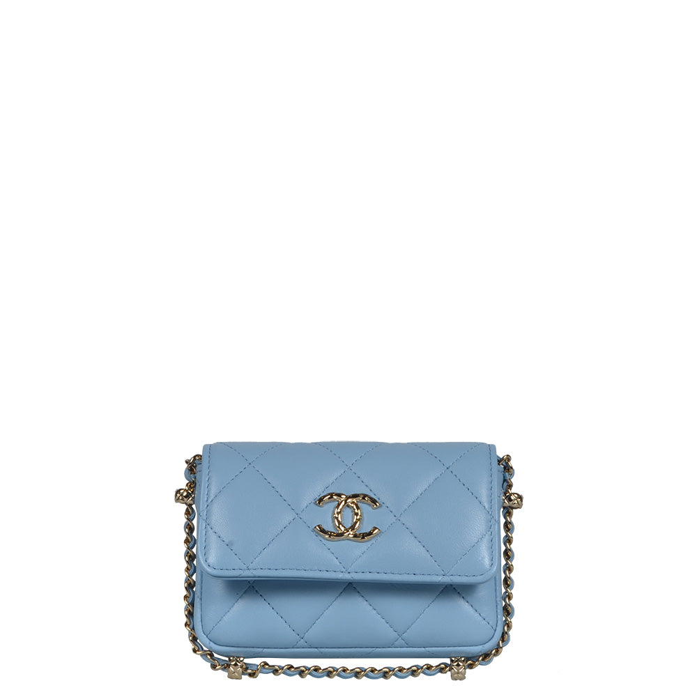 Chanel Mini Wallet On Chain Lammleder Babyblau Hardware Silber