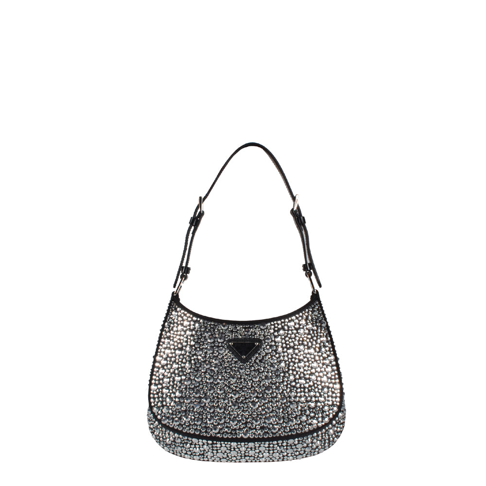 Prada Cleo Satin Schwarz mit Kristallen Hardware Silber