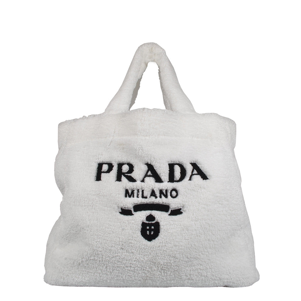 Prada Tote Bag aus Frottee Weiß Hardware Silber