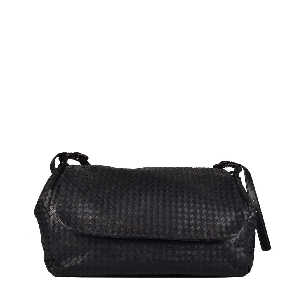 Bottega Veneta Messenger Leder Intrecciato Schwarz Hardware Eloxiert