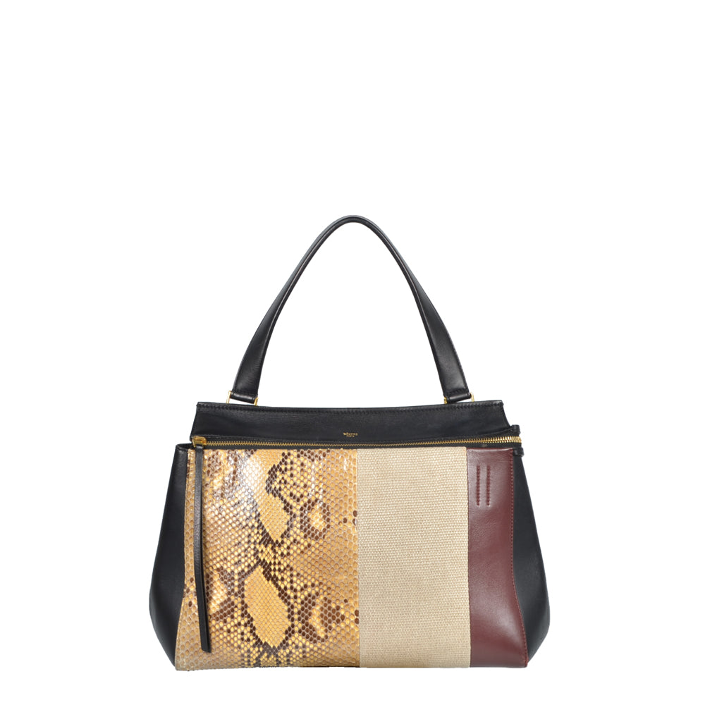 Celine Edge Bag Multicolor Phyton Schlange Leder Schwarz Beige Hardware Gold