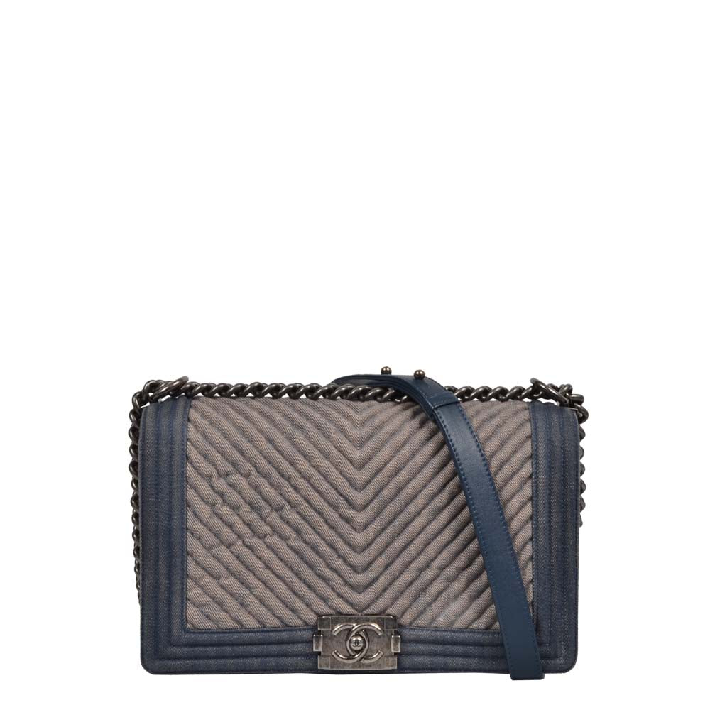 Chanel Boy 28 Jeans Denim Hardware Silber Kette
