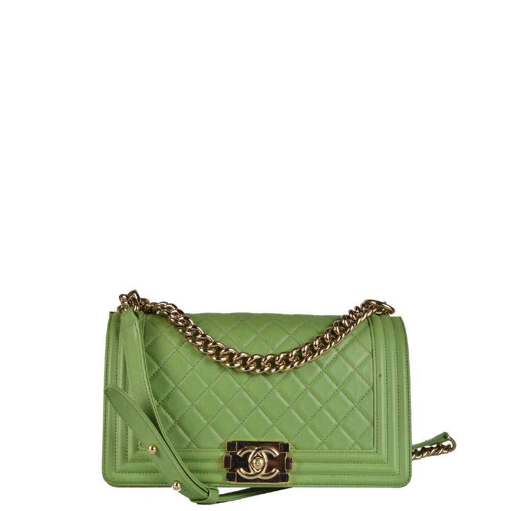 Chanel Boy Medium Lamm Leder Grün Hardware Champagnergold