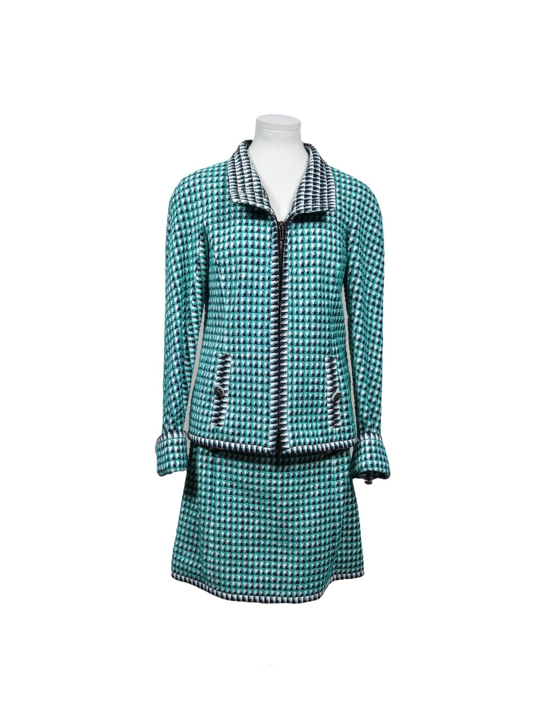 Chanel Kostüm Tweed Boucle schwarz türkis Gr. 38
