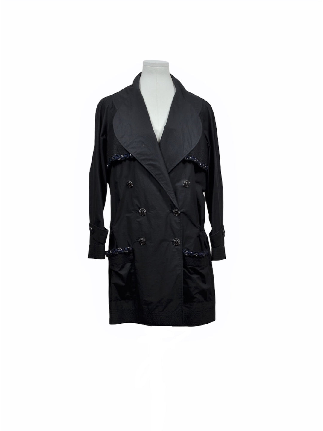 Chanel Regenmantel Tweed Bouclé Schwarz Gr. 42