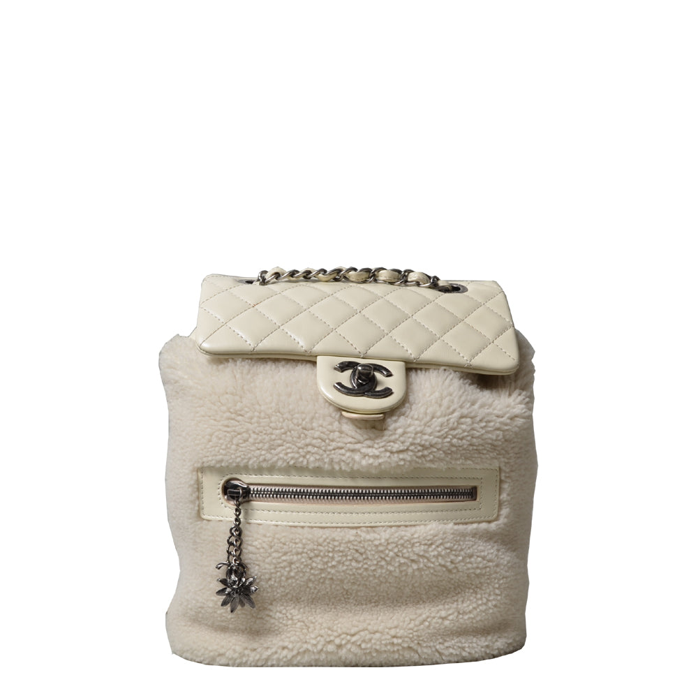 Chanel Rucksack Backpack Lammfell lambskin ecru off-white Silber silver