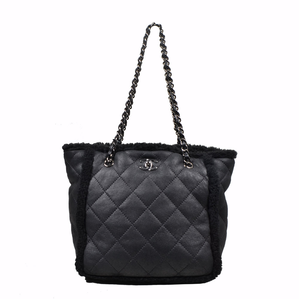 Chanel Shopper Bag Lambskin Leather Black Silver Lammfell Tasche Schwarz