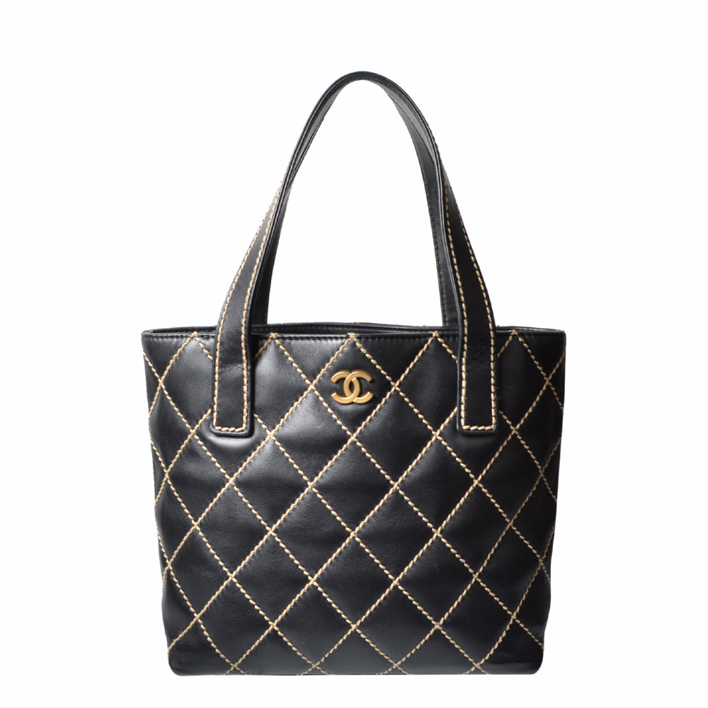 Chanel Shopper Bag Tasche Black schwarz Vintage Beige Stiching
