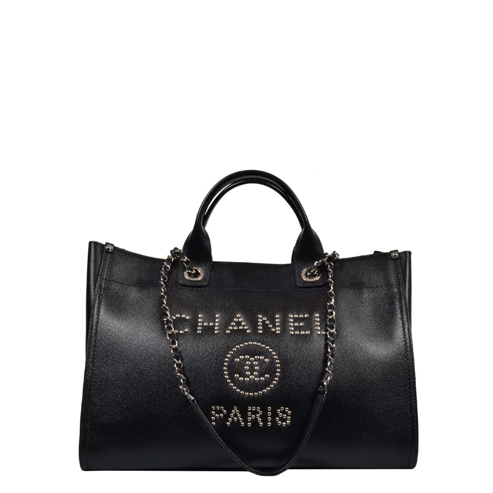 Chanel Shopper Deauville Caviar Leder schwarz Silber mit Nieten