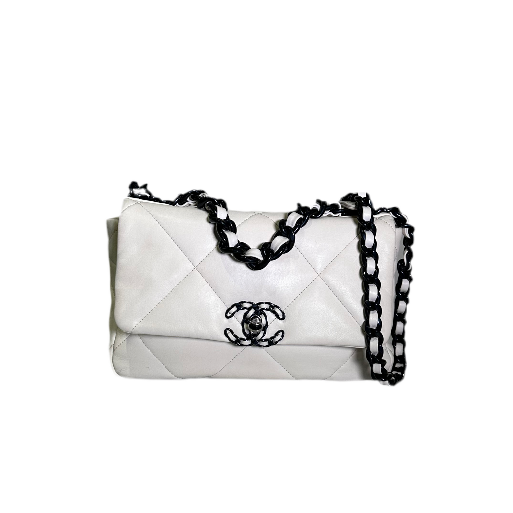 Chanel Tasche 19 Nappa Leder Weiß Hardware Schwarz