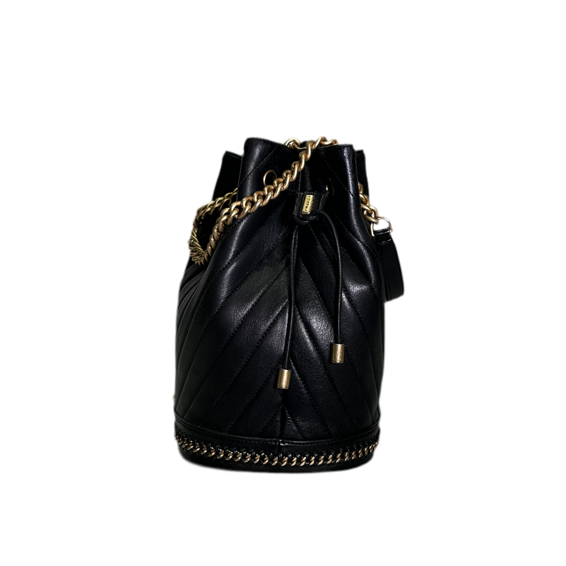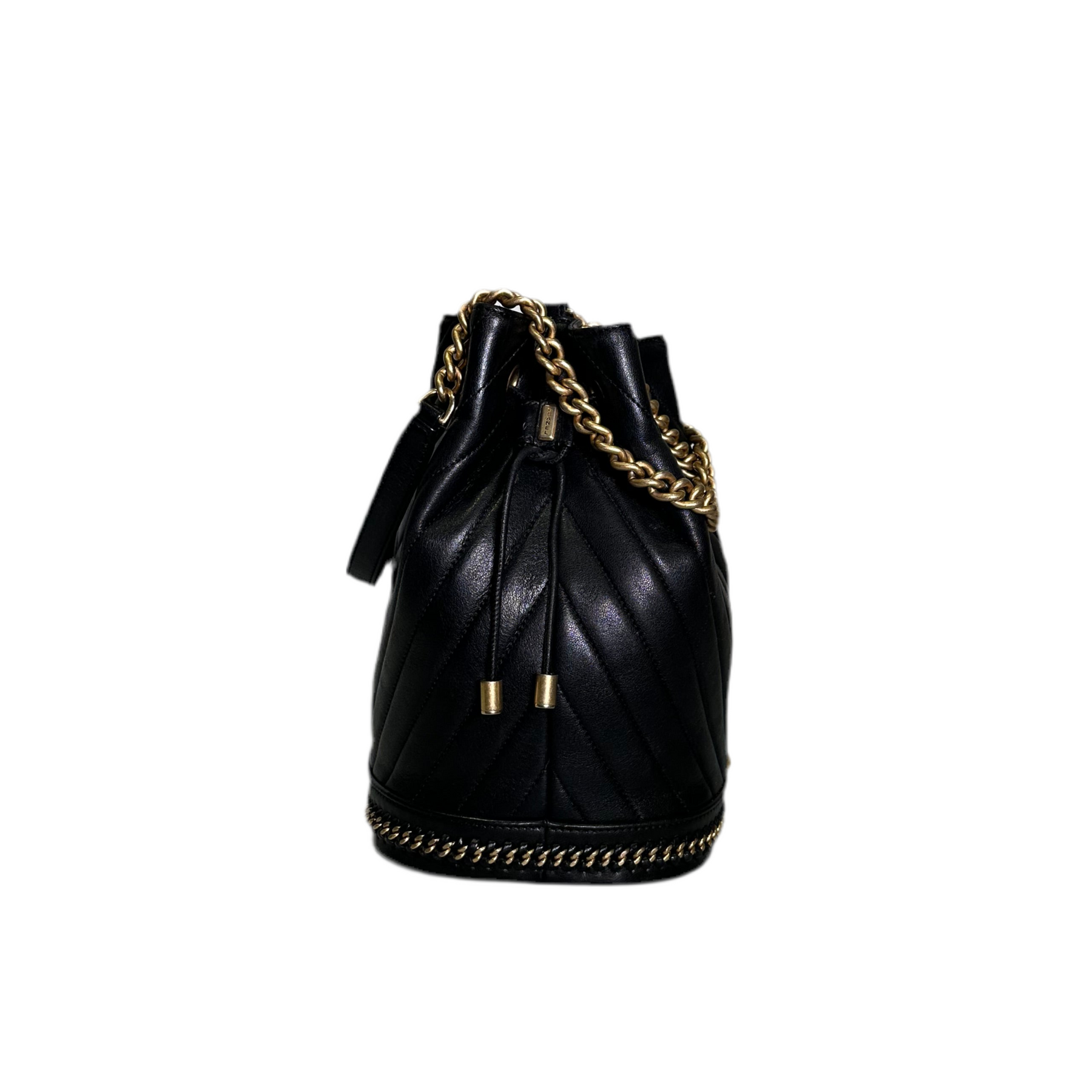 Chanel Bucket Bag Cosmopolite Drawstring Chevron Schwarz Nappaleder Hardware Gold