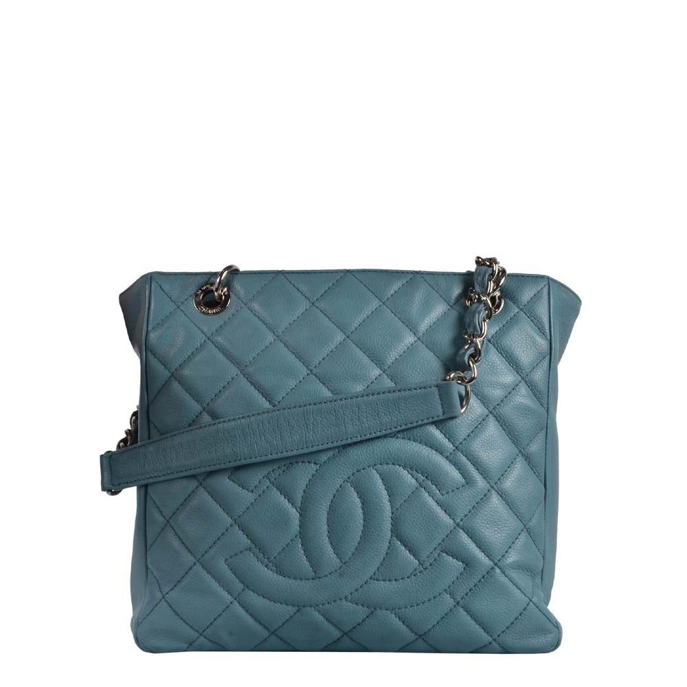Chanel Tasche GTS Caviar Shoppper babyblau silber Hardware