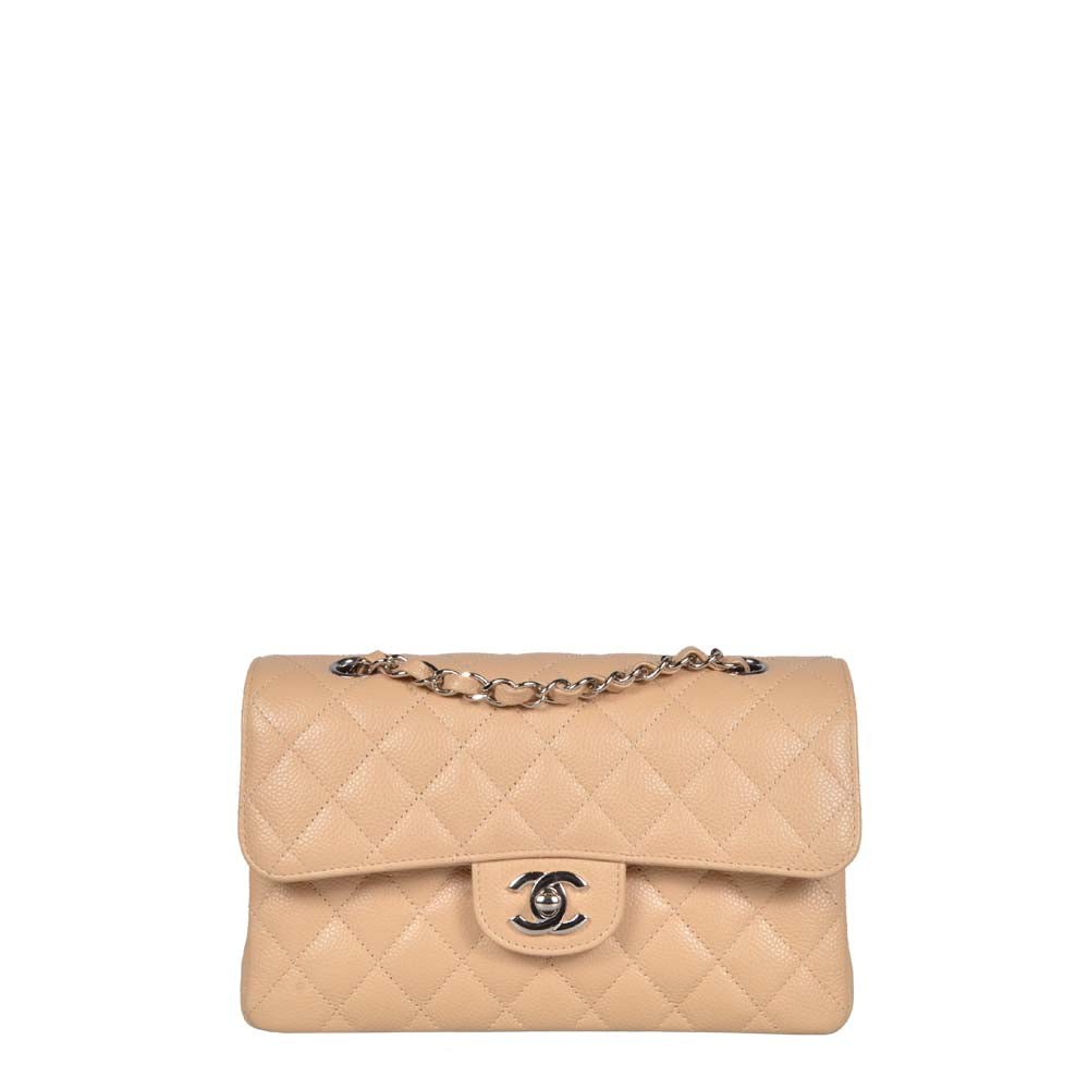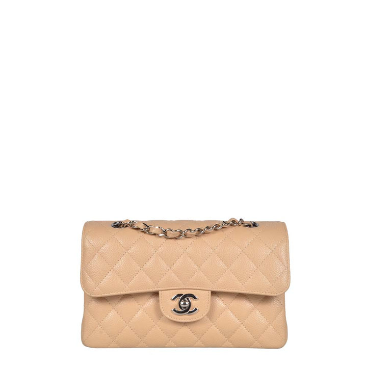 Chanel Timeless 23 Caviar Leder Beige Hardware Silber