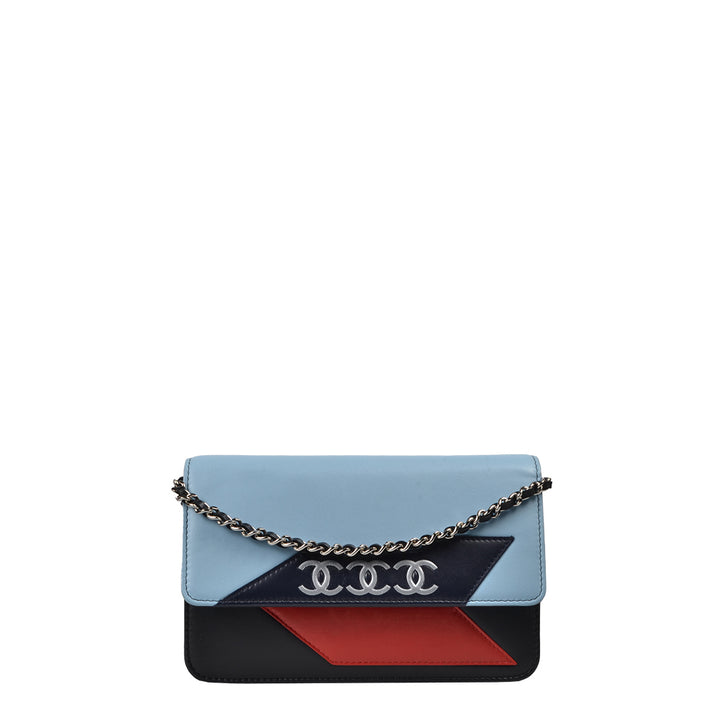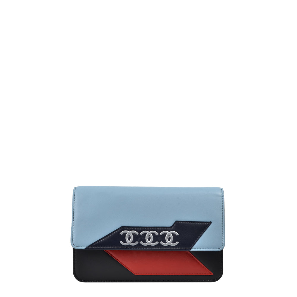 Chanel Wallet On Chain Airlines Blau HellblauRot Hardware Silber