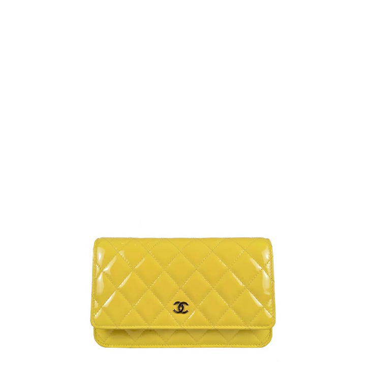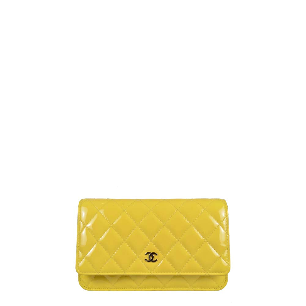 Chanel Wallet On Chain Lackleder Gelb Hardware Silber