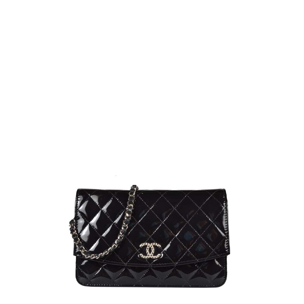Chanel Wallet on Chain schwarz Lackleder Silber Hardware