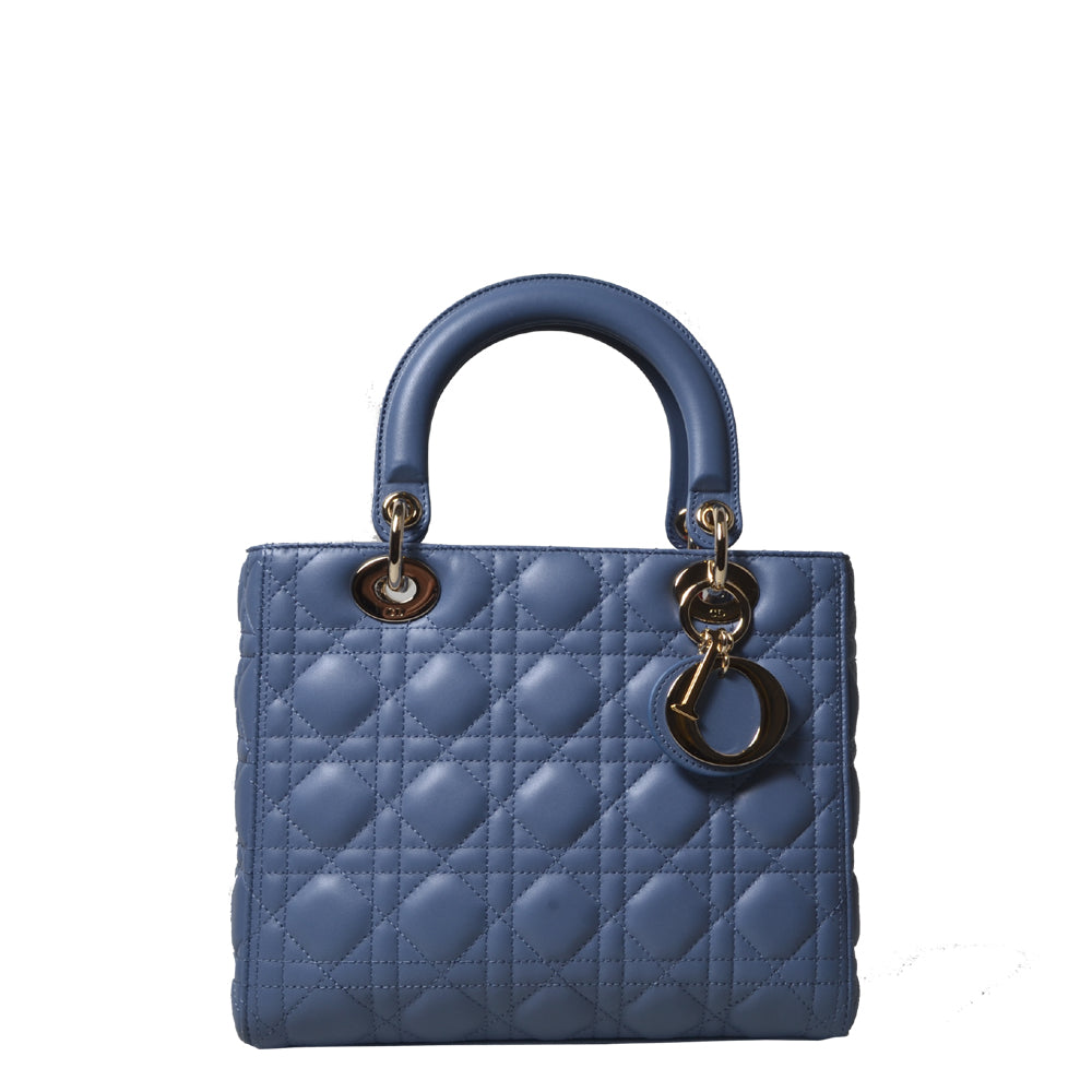 Dior Lady Dior Medium Lamm Leder Jeans Blau Hardware Silber