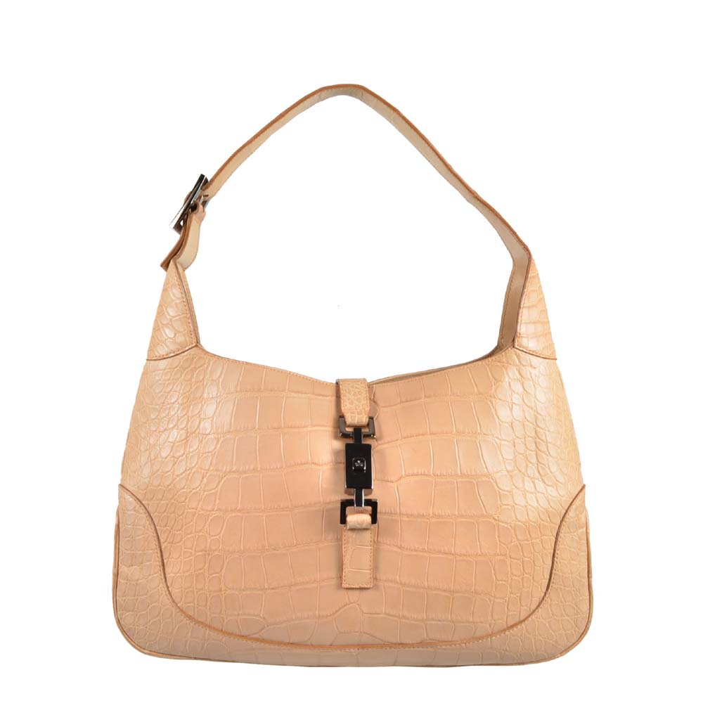 Gucci Jackie O Krokoleder sandfarben silber Hardware