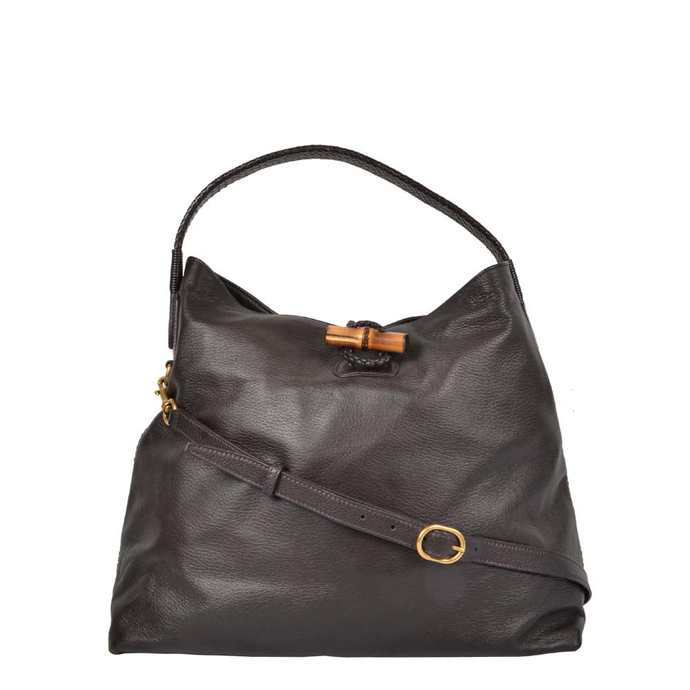 Gucci Tasche Bag Leder leather dearskin Hirschleder braun brown Bamboo Bambus mit Schultergurt shoulderstrap