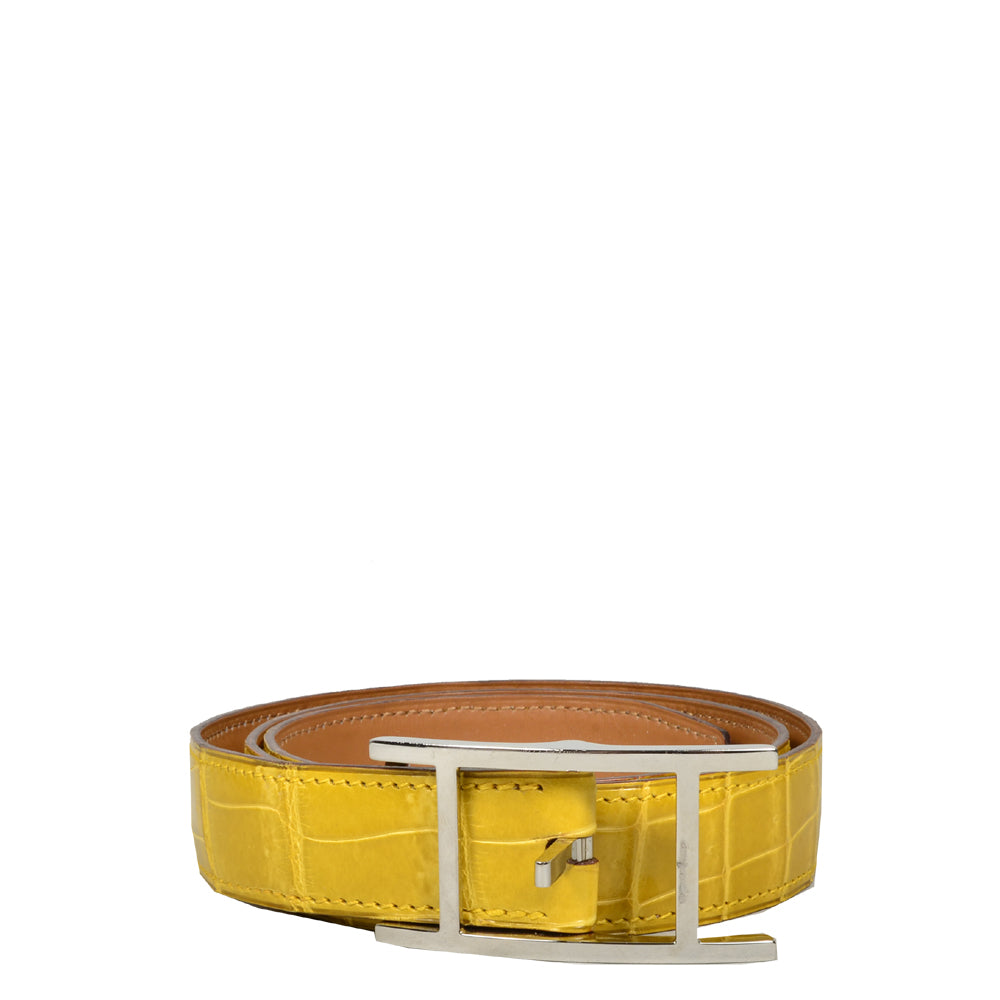 Hermes Belt Gürtel Quentin Alligator Yellow Palladium 80 cm