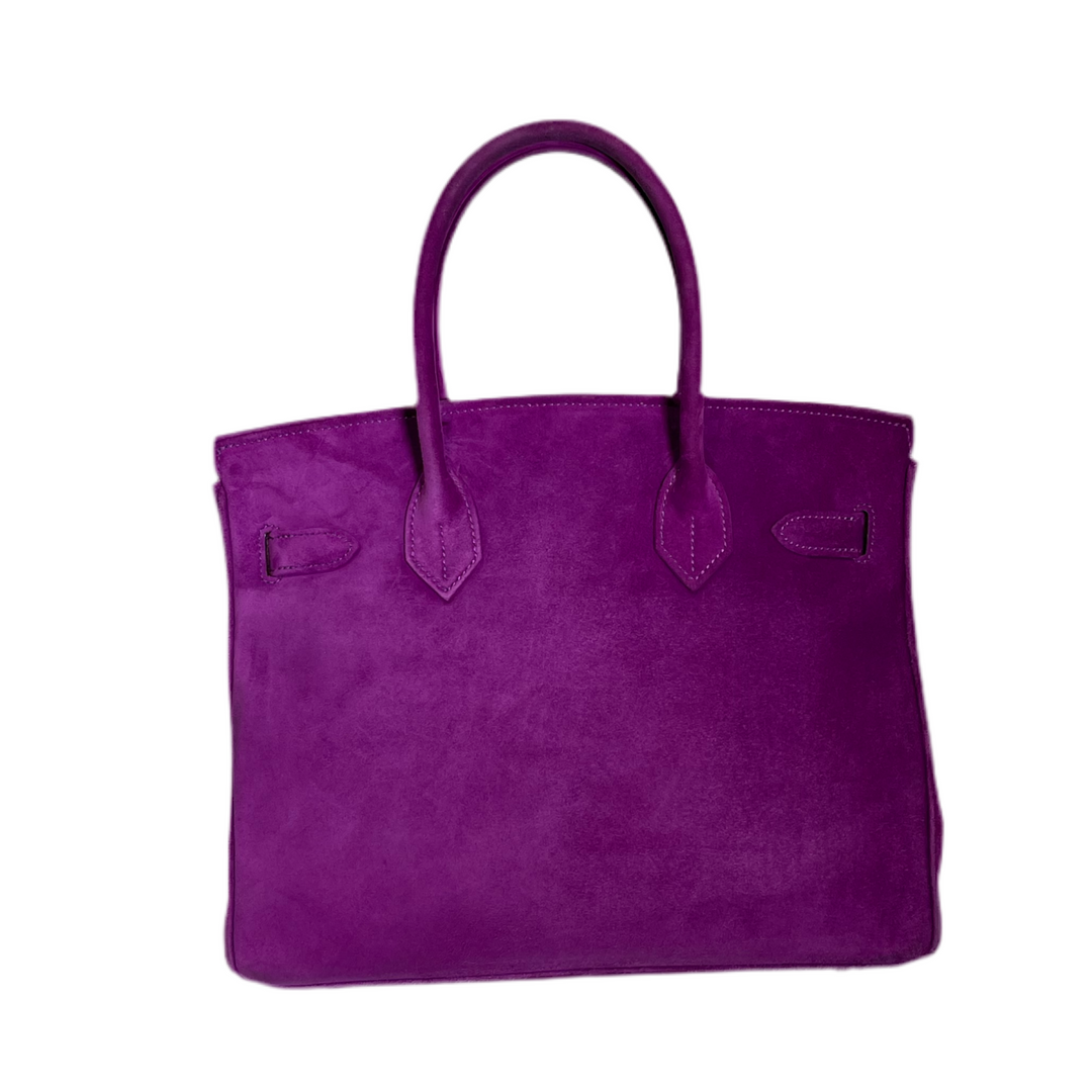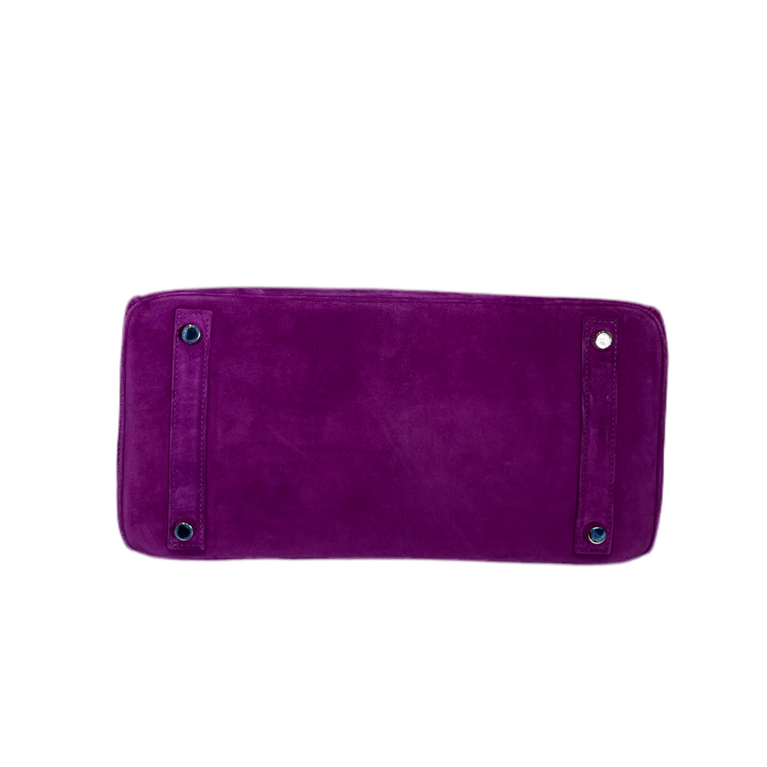 Erleben Sie Luxus pur mit dem Hermes Birkin 30 Doblies Wildleder Tasche in Violet mit Palladium Beschlägen. Die hochwertige Wildleder-Qualität und das ikonische Design machen diese Tasche zu einem zeitlosen Schmuckstück. Perfekt für jeden Anlass und ein wahrer Hingucker, der Komfort und Eleganz vereint.