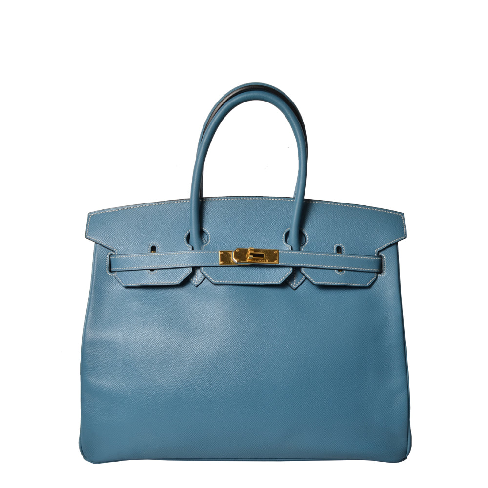 Hermes Birkin 35 Epsom Leder Blue Jeans Hardware Gold