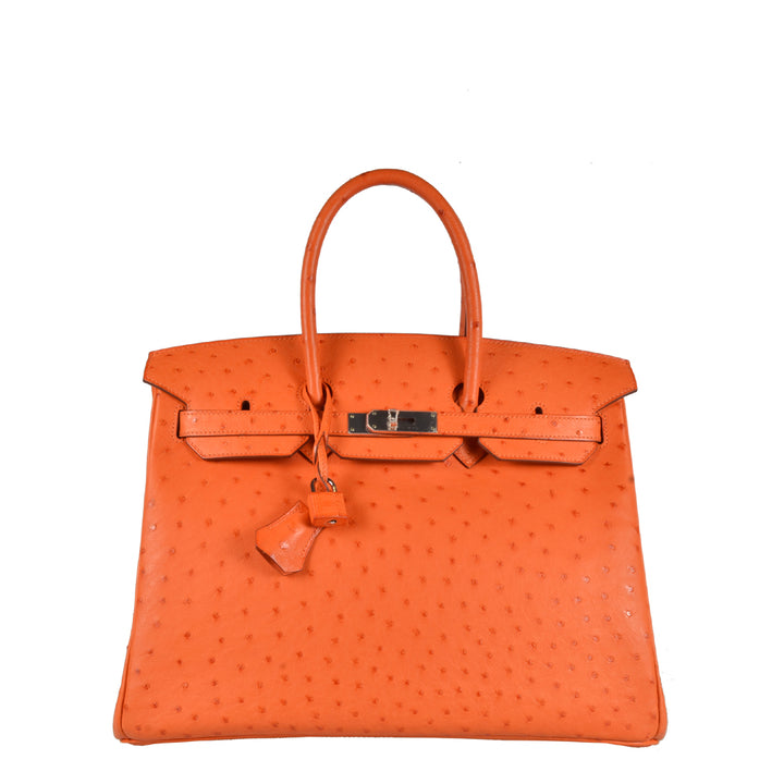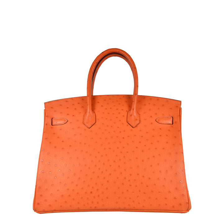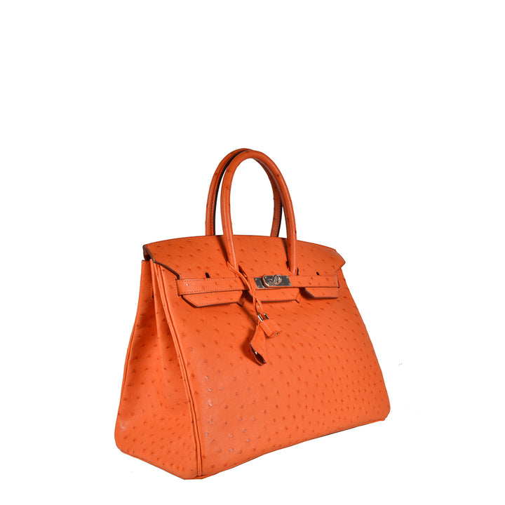 Hermes Birkin 35 Strauß Leder Tangerine Hardware Palladium Tasche bag
