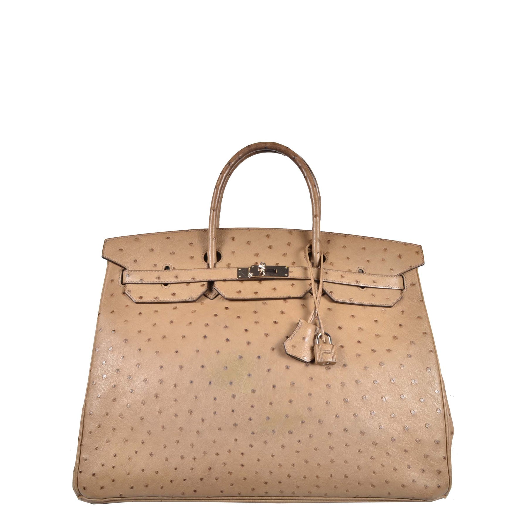 Hermes Birkin 40 Strauß Leder Etoupe Hardware Palladium