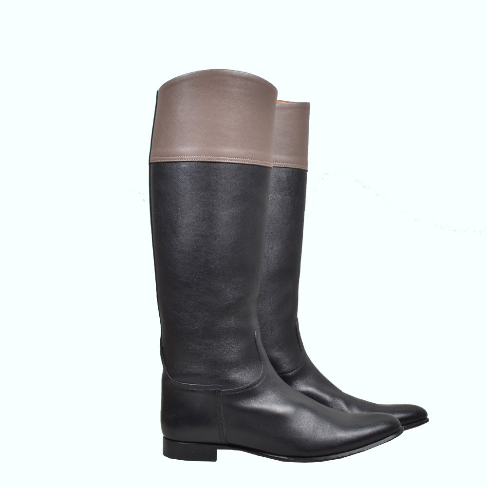 Hermes Boots Etoupe Black Leather Size 39,5 Stiefel Leder Schwarz