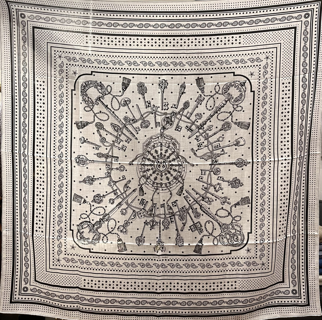Hermes Carre Scarf Le Cle Cashmere / Silk 140 x 140 cm black grey