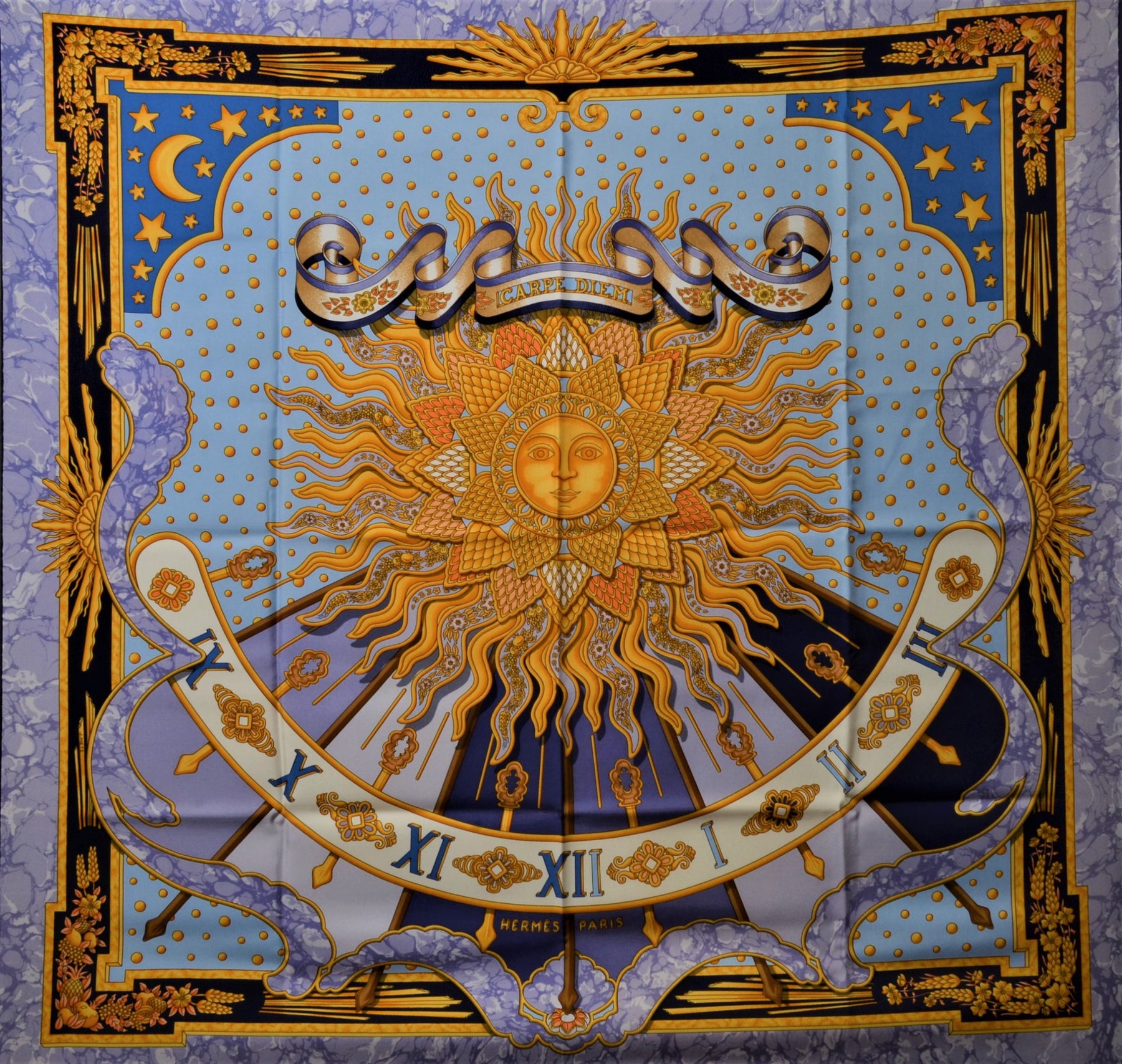 Hermes Carre Seidentuch Silk Seide Soie Carpe Diem blau