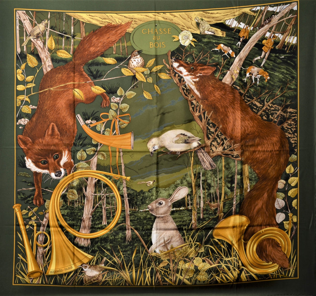 Hermes Carre Seidentuch Silk Seide Soie Chasse au Bois