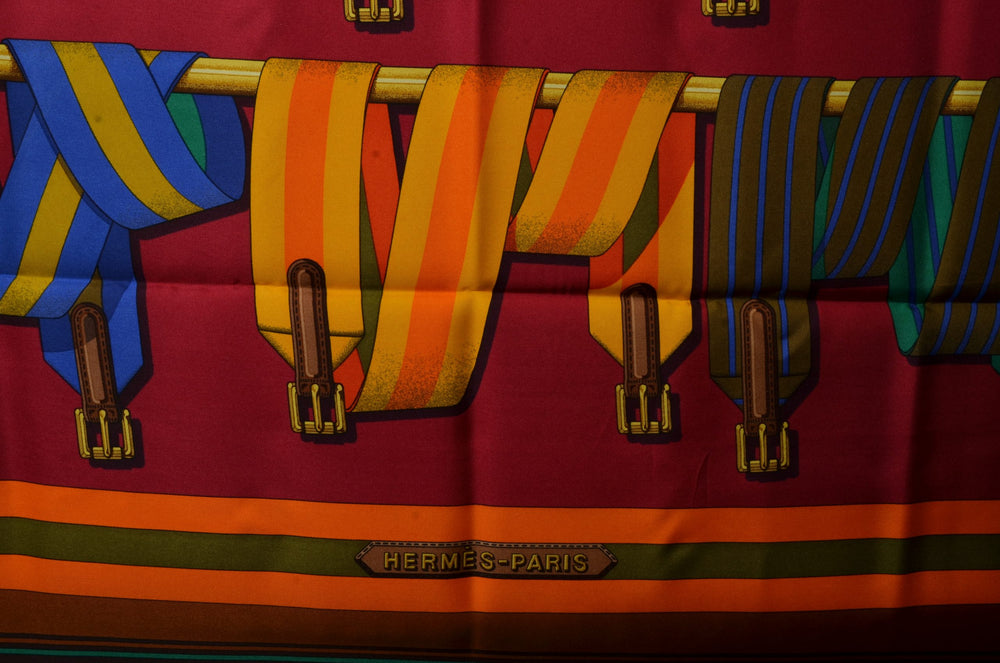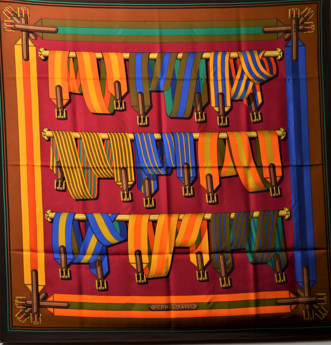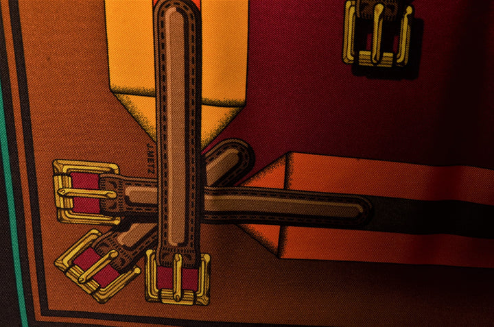 Hermes Carre Seidentuch Silk Seide Soie Sangles Equestrian Belt Print