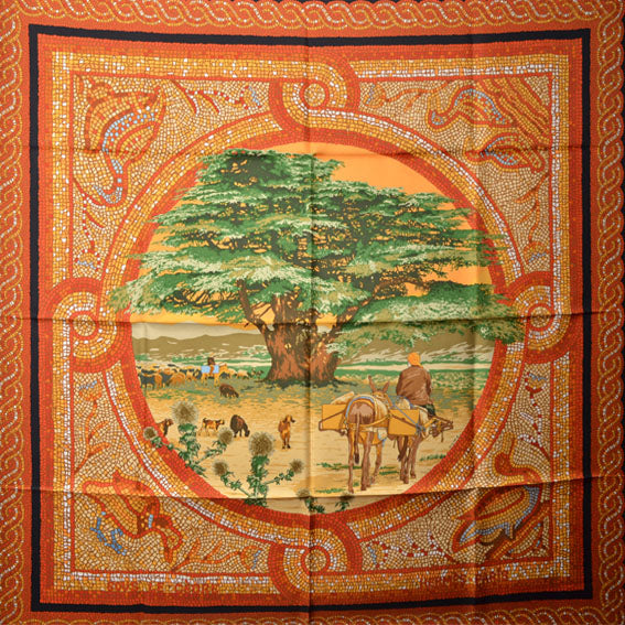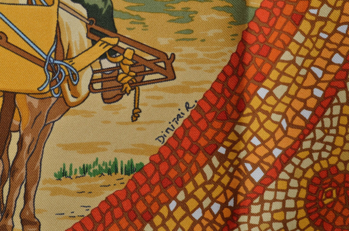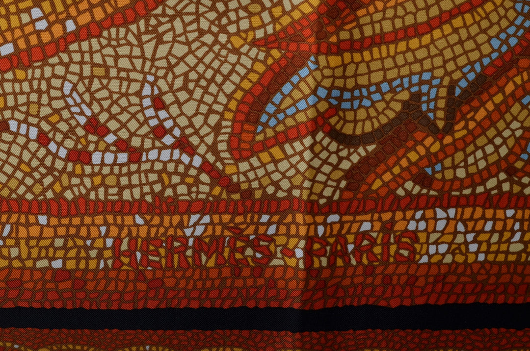 Dieses schöne Hermes Carre / Seidentuch im klassischen Design ist ein schöner Begleiter für jeden Tag. Es kann sowohl im Haar so wie als Halstuch oder an der Tasche getragen werden. Somit ist es vielseitig einsetzbar.