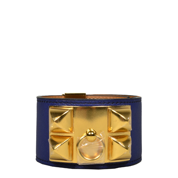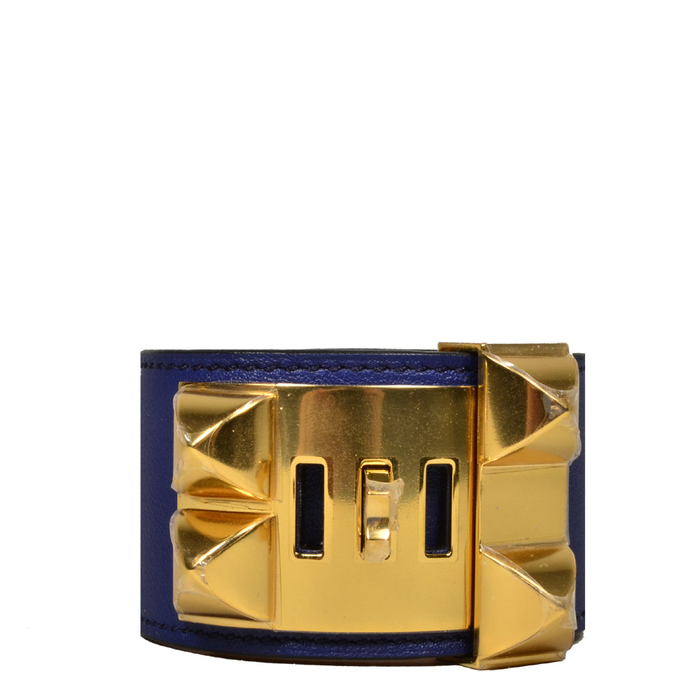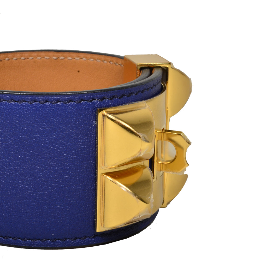 Hermes Collier De Chien Bracelet Bleu Electrique Swift Leather Size L