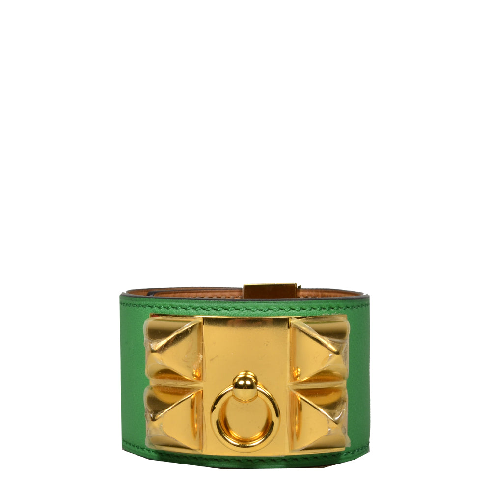 Hermes Collier De Chien Bracelet Swift Leather Apple Green Size L