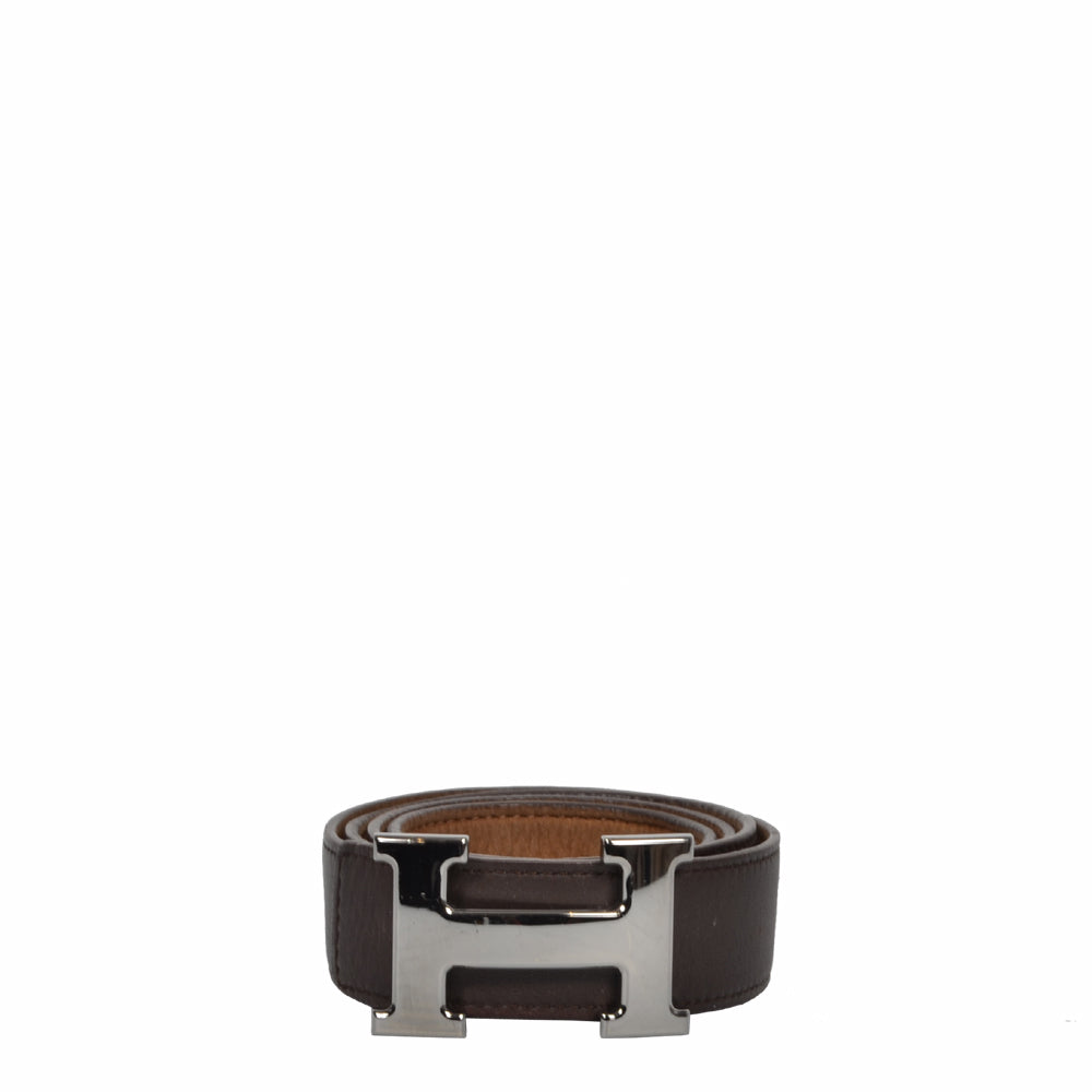 Hermes Gürtel H Silber 95 braun Etoupe Belt reversible