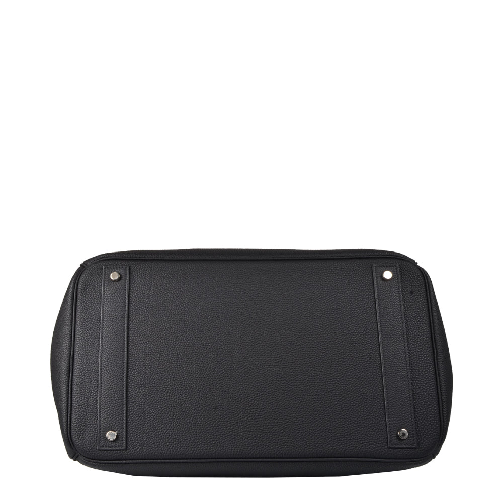 1984 trifft der Chef Designer des Hauses, Jean-Louis Dumas, auf einem Flug die Schauspielerin Jane Birkin. Sie war die Inspiration hinter der Birkin Bag, einer Tasche perfekt für den Alltag tauglich, mit Platz für alles was eine junge geschäftige Frau benötigt. Hier zum Verkauf steht eine abgewandelte Form der Birkin mit dem Namen “Haut a Courroies” aus Togo Leder in der Farbe Schwarz.