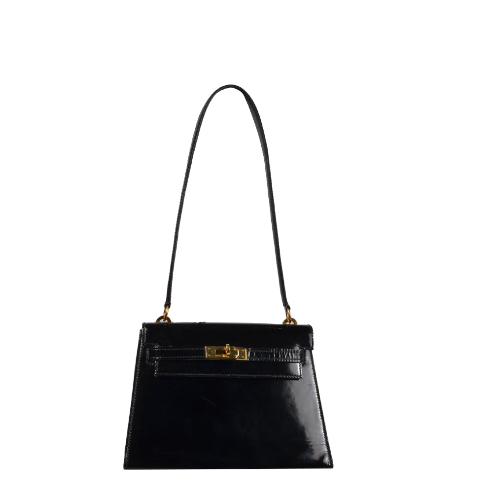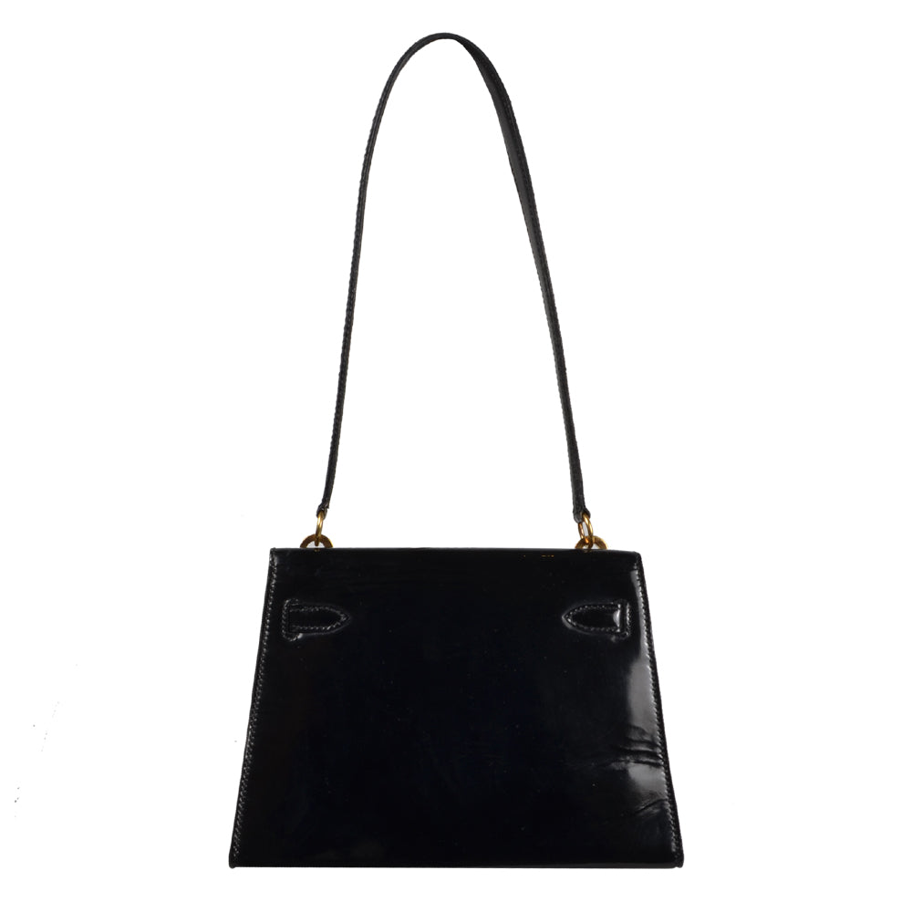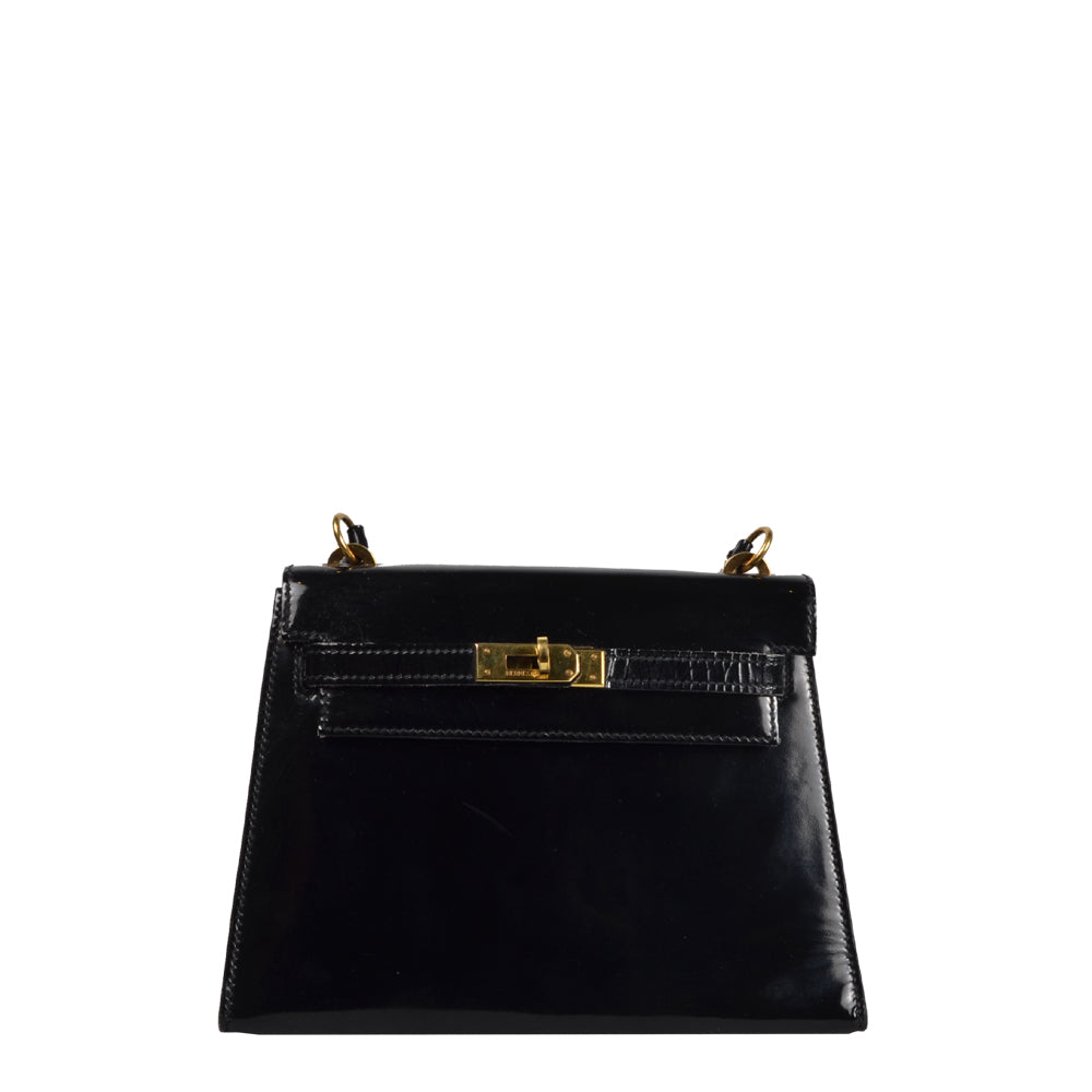 Hermes Kelly 20 Vintage Lackleder Schwarz Hardware Gold