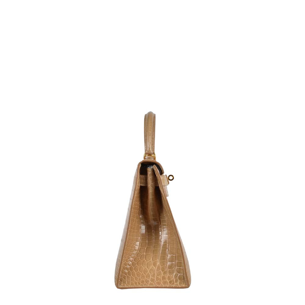 Hermes Kelly 28 Sellier Niloticus Leder Natural Sable Hardware Gold