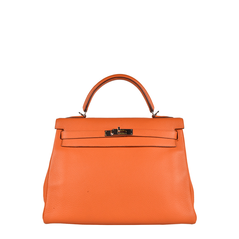 Hermes Kelly 32 Retourne Clemence Leder Orange Hardware Palladium