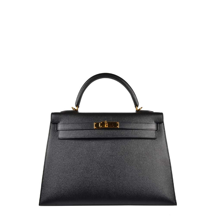 Hermes Kelly 32 Sellier Epsom Leder Schwarz Hardware Gold