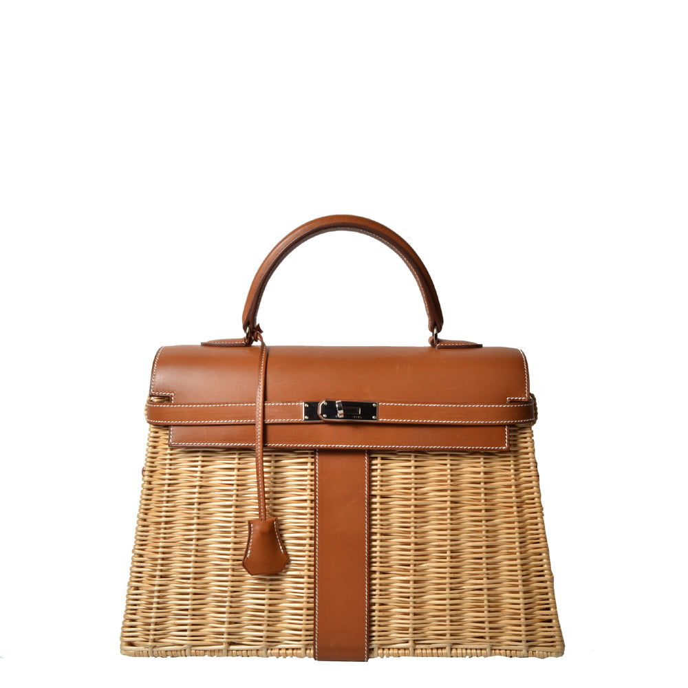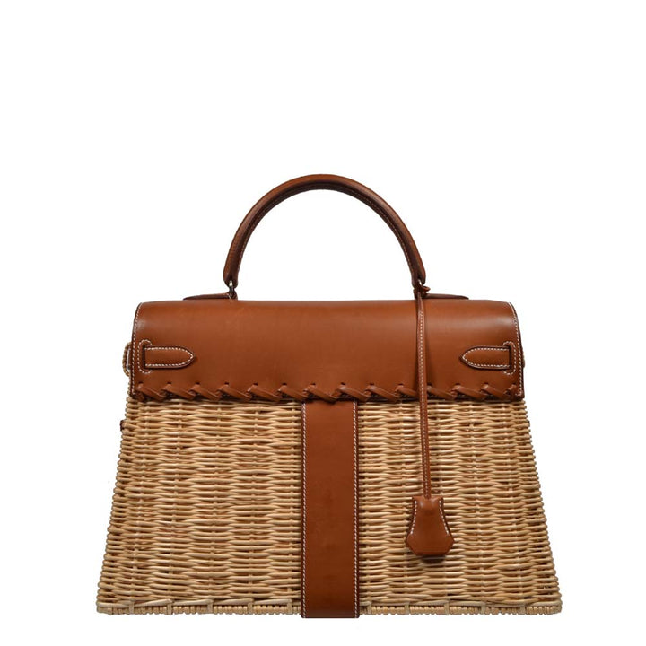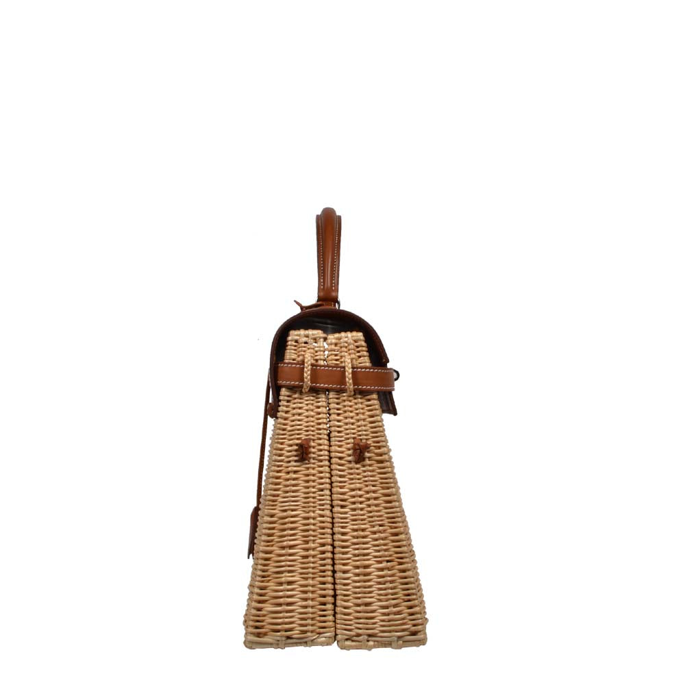 Eine sehr schöne und seltene Hermes Kelly Picnic in 35 cm  in Korb und Barenia Leder mit Palladium Hardware. Die Tasche ist innen mit Ziegenleder. ausgelegt. Das Barenia Leder ist sehr selten bei Hermes Paris !