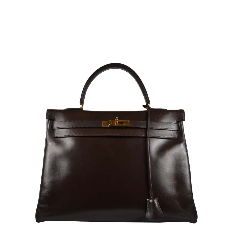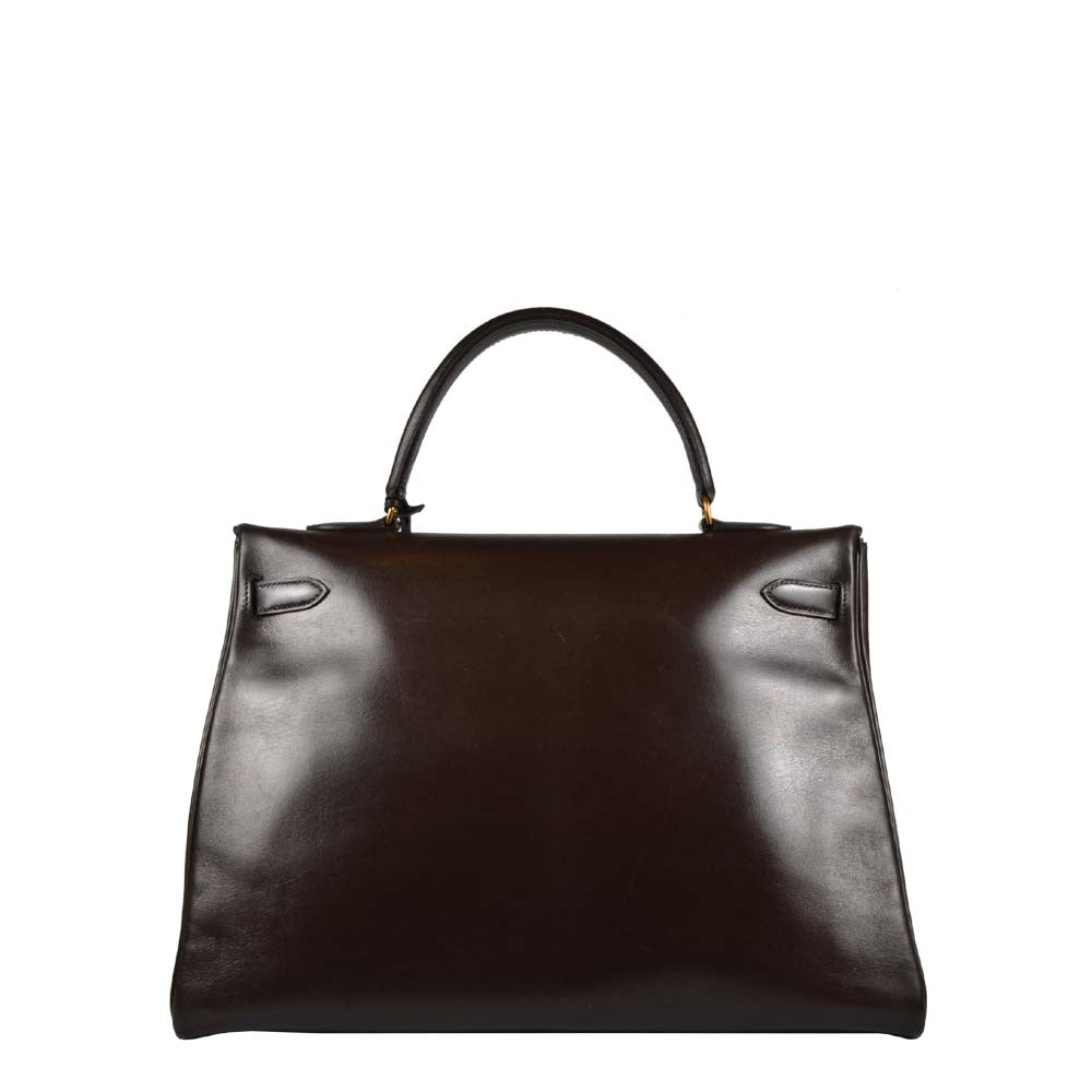 Hermes Kelly 35 Retourne Box Leder Braun Hardware Gold