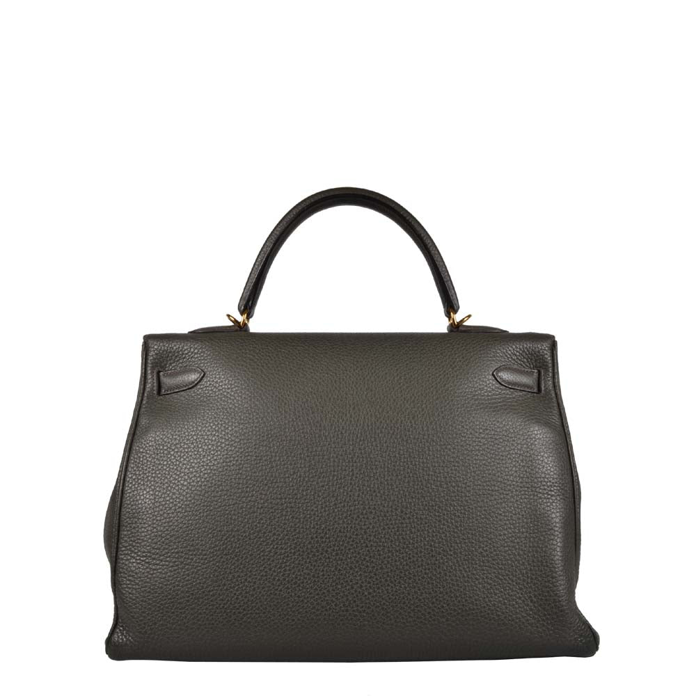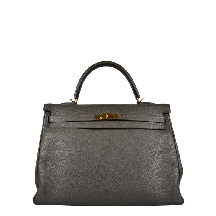 Hermes Kelly 35 Retourne Togo Leder Vert de Gris Hardware Gold
